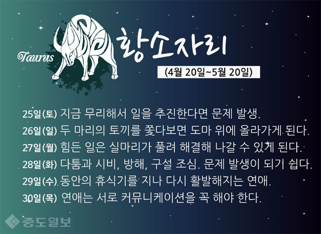 25일(토)지금 무리해서 일을 추진한다면 문제 발생.