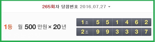 한편 연금복권 265회차 당첨번호는 다음과 같다.
