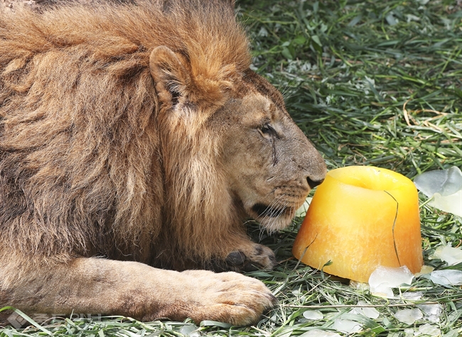 这个月的10号是世界狮子节,在韩国爱宝乐园中生活的狮子一家正吃着为他们准备的特殊食物。世界上现在仅仅剩下了2万只狮子,为了保护狮子们的生活环境2013年成立了美洲环境研究团。