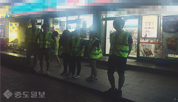 한국수출입은행과 함께하는 희망씨앗 대학생봉사단 대전 팀은 지난 8월 14일 유성구 봉명동 일대에서 편의점 핫라인 확인 과 불법현수막 및 쓰레기 무단투기 실태 조사를 위한 야간 방범순찰 활동을 하였다.