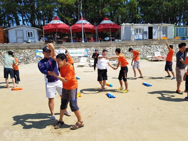 BJ대청라이온스클럽은 대전 서구 평촌동에 있는 ‘꿈이 있는 장애인 단기보호센터’(시설장 박경순)에 거주하는 정신지체 장애우 20여명을 초청해 지난 3일 보령 용두해수욕장에서 봉사활동을 펼쳤다.