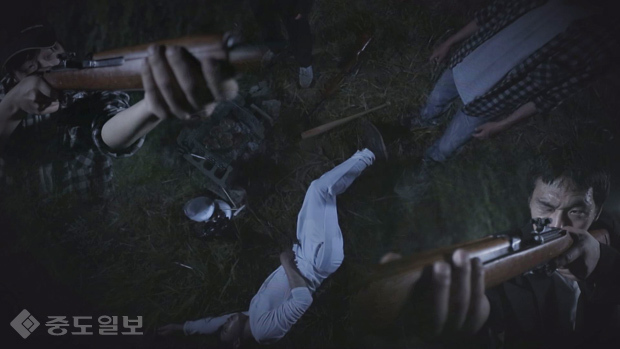 “승용차 앞에서 고기를 구워먹고 있으라고 김씨가 지시를 했습니다. 한구(가명)가 형이나 먹으라고 하면서 일어나있는데, 그 때 총소리가 났던 것입니다. 공기총 소리를 듣고 저는 놀라 뒤로 엉덩방아를 찧고 넘어졌습니다.” - 황민수(가명) 진술서 中