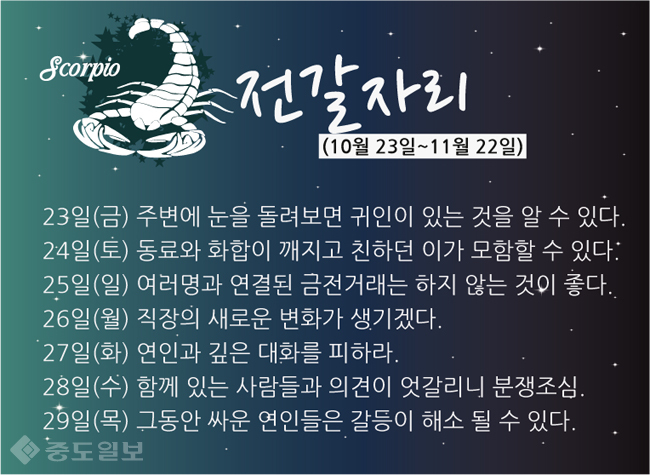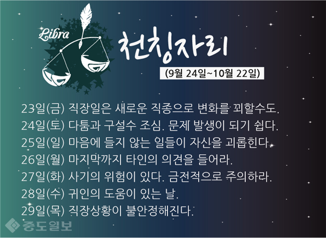 24일(토) 다툼과 구설수 조심. 문제 발생이 되기 쉽다.