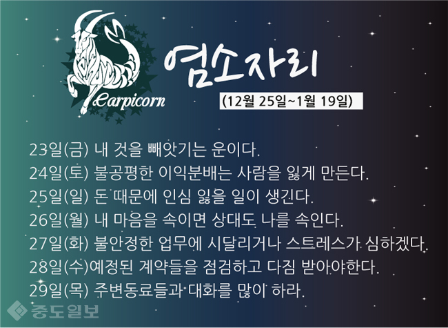 25일(일) 돈 때문에 인심 잃을 일이 생긴다.