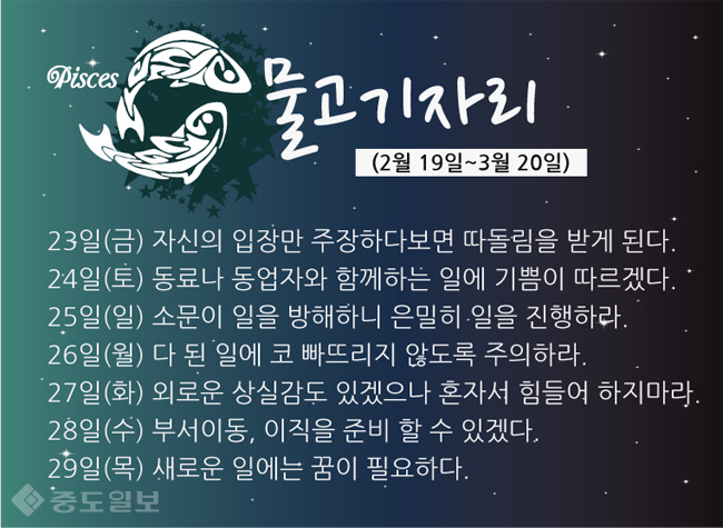 23일(금) 자신의 입장만 주장하다보면 따돌림을 받게 된다.