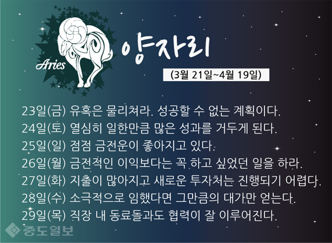 24일(토) 열심히 일한만큼 많은 성과를 거두게 된다.