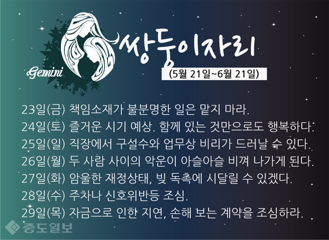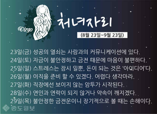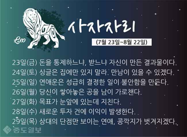 24일(토) 싱글은 집에만 있지 말라. 만남이 있을 수 있겠다.