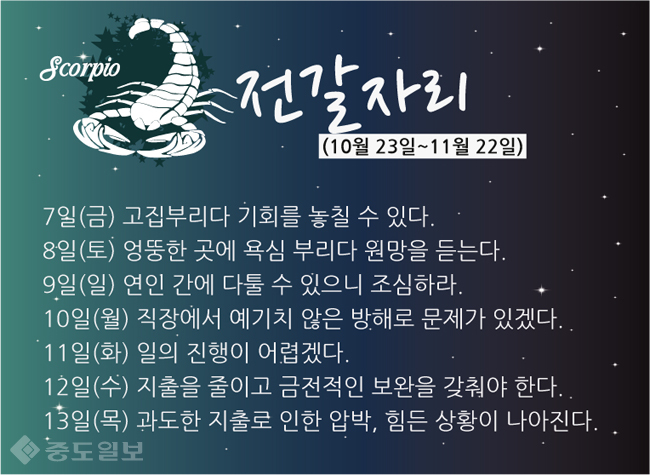 11일(화) 연인에게 돈이 많이 들어가는 것을 조심하라.