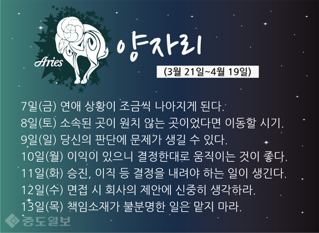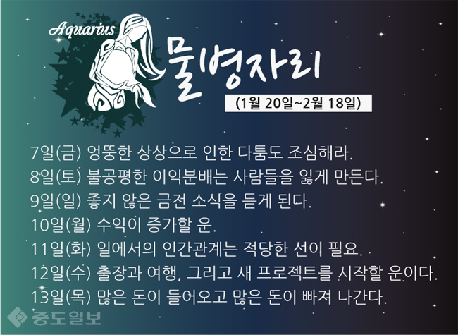 7일(금) 엉뚱한 상상으로 인한 다툼도 조심해라.