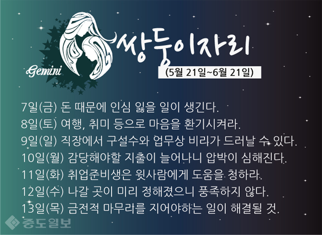 10일(월) 금전문제에 침묵하고 지나가길 기다려라.