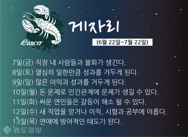 7일(금) 직장 내 사람들과 불화가 생긴다.