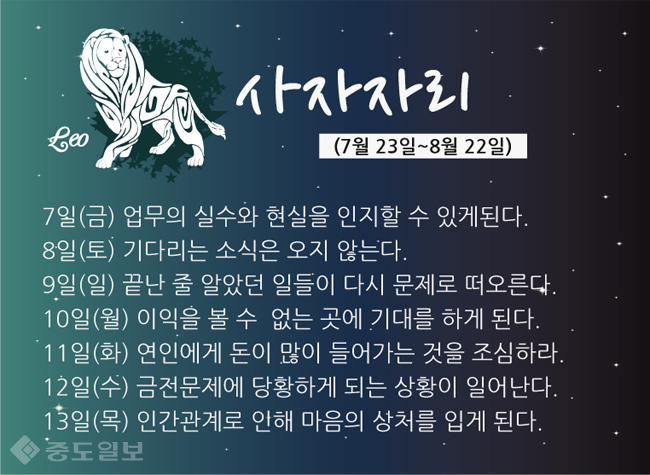 8일(토) 자금관리에 신경 쓰는 것이 좋다.
