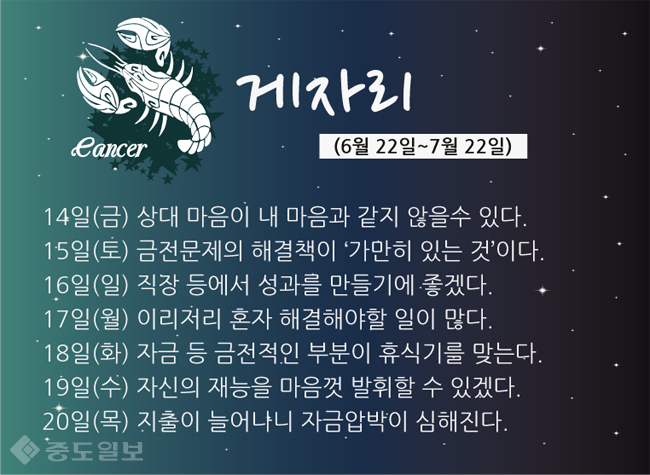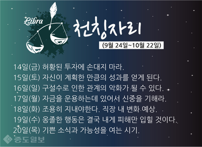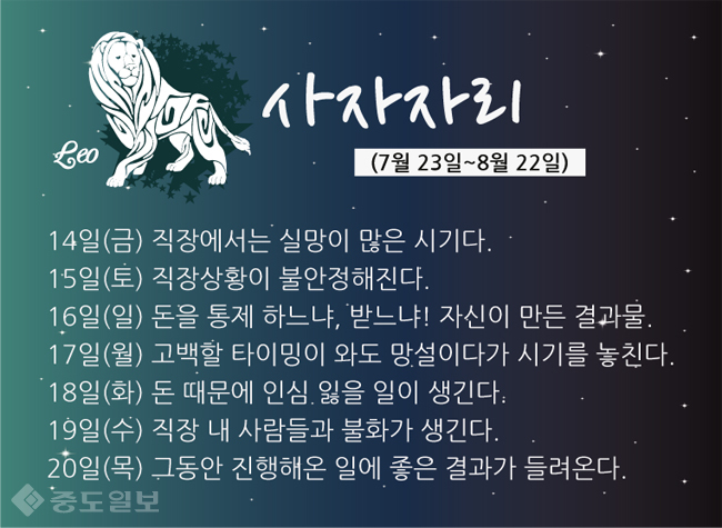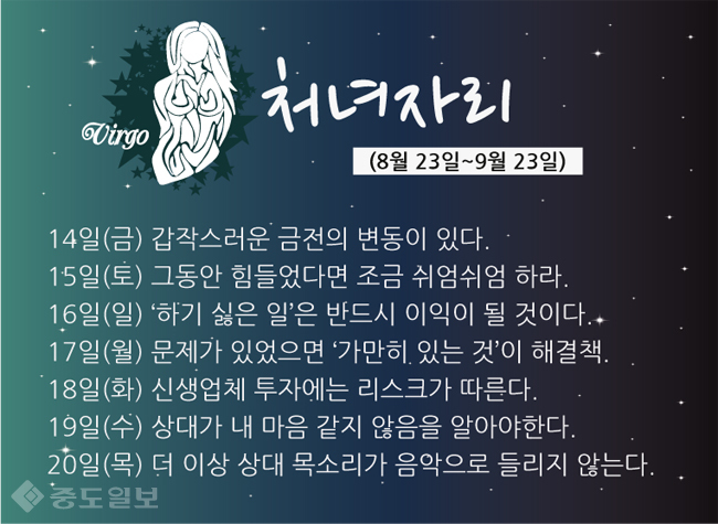 15일(토) 큰돈 나갈 일이 생기니 주변을 잘 살펴라.