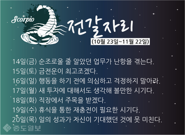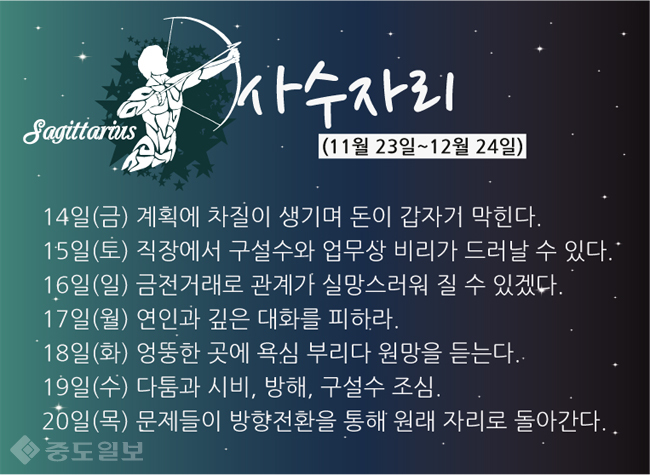 14일(금) 직장동료의 이기심에 힘들어진다.