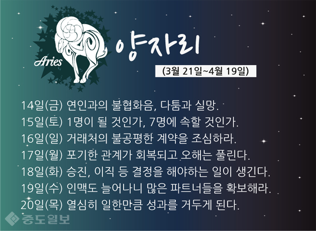 14일(금) 새 인맥을 통해 좋은 일이 시작된다.