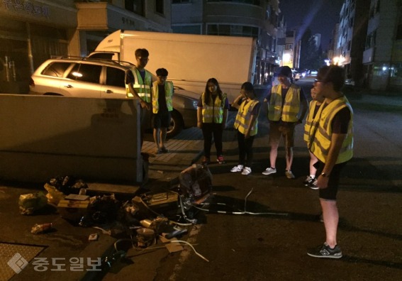 한국수출입은행과 함께하는 희망씨앗 대학생봉사단 대전 팀은 유성구 장대동 봉명동 등 유성구 일대에서 안전 예방을 위한 야간 방범순찰 활동을 진행하고 있다. 야간 방범활동은 주로 골목길이나 유흥가 주변 아니면 어둡고 후미진 곳을 중심으로 진행하는데 방범활동을 하다보면 길거리 쓰레기무단투기 되어 있는 모습을 너무나도 쉽게 볼 수 있다. 쓰레기 무단투기를 막으려고 적외선 감지센서 와 방범용CCTV 등을 상습 투기지역에 설치 하지만 설치되어 있는 곳만 쓰레기가 버려져 있지 않고 설치가 되지 않은 곳은 여전히 더럽고 지저분하며 심한 악취가 난다. 아직까지 재정적인 문제로 인해 적외선 감지센서 와 방범용CCTV 많이 설치 하기는 힘들다고 본다. 이런 쓰레기들을 방치하게 되면 무단투기가 자연스럽게 발생하게 될 것이고, 어두운 분위기를 따라 여러 범죄를 낳게 될 것이다.
