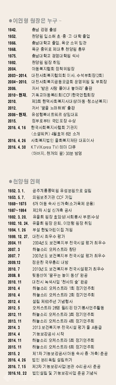 이에 천양원 원장 겸 을희복지재단 이사장인 이연형 이사장을 만나 을희복지재단 설립과 관한 이야기를 들어보았다. <편집자 주>