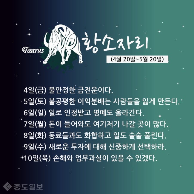 4일(금) 자금에 여유생기고 이득이 생긴다.