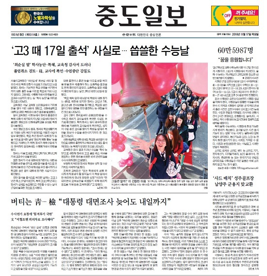 오늘(17일)은 다시금 수능일이다. 국정농단에 이어 고입과 대입까지를 농단하는 일이 다시는 재발돼선 안 된다.
