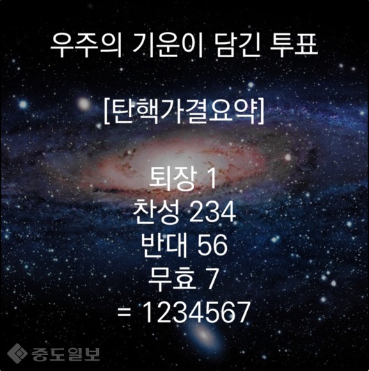 “박근혜 대통령 탄핵소추안”을 국회에서 무기명으로 표결에 부쳤는데 결과는 투표를 하지 않고 나온 사람 1명, 찬성 234명, 반대 56명 무효표 7명으로 신기하게도 어떻게 1,2,3,4,5,6,7 정해진 순서대로 나열될까?