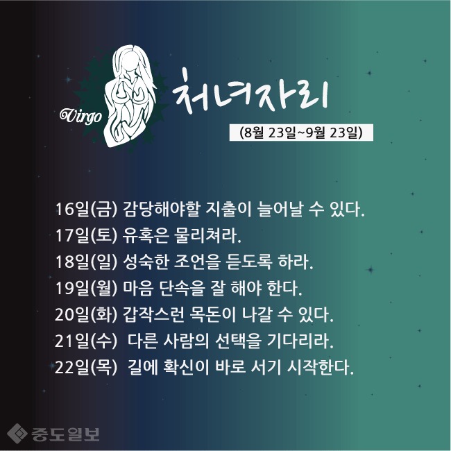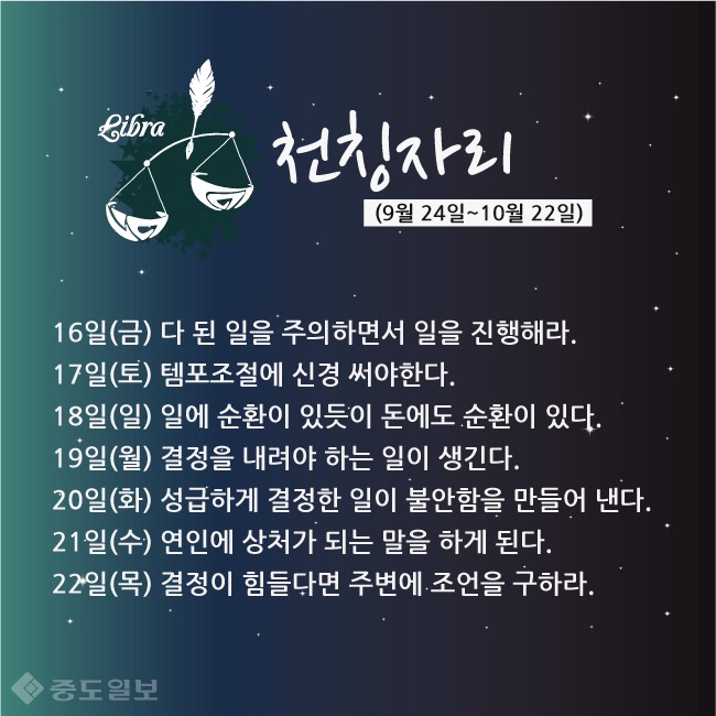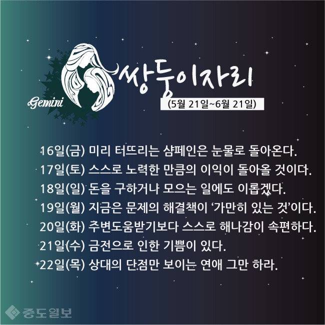16일(금) 말과 행동을 주의하고 조용히 있는 것이 좋다.