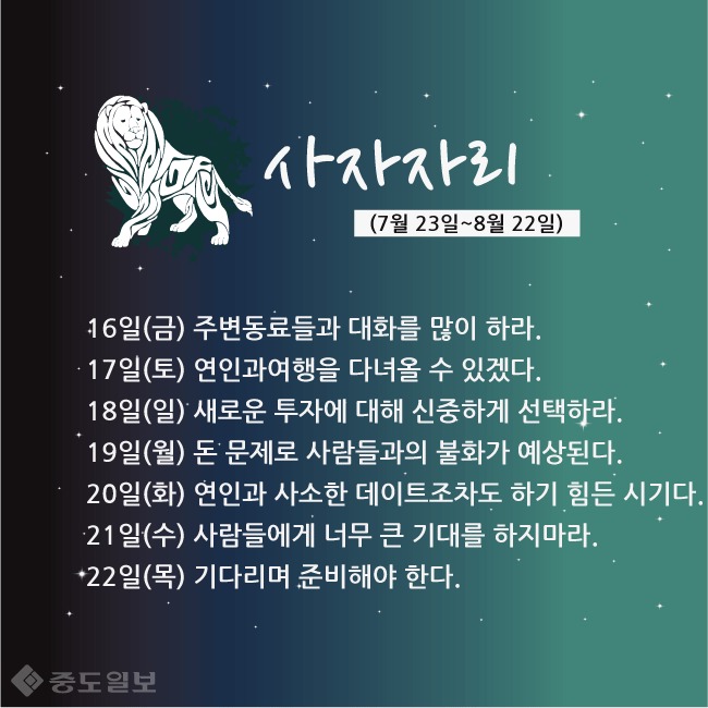 18일(일) 새로운 투자에 대해 신중하게 선택하라.