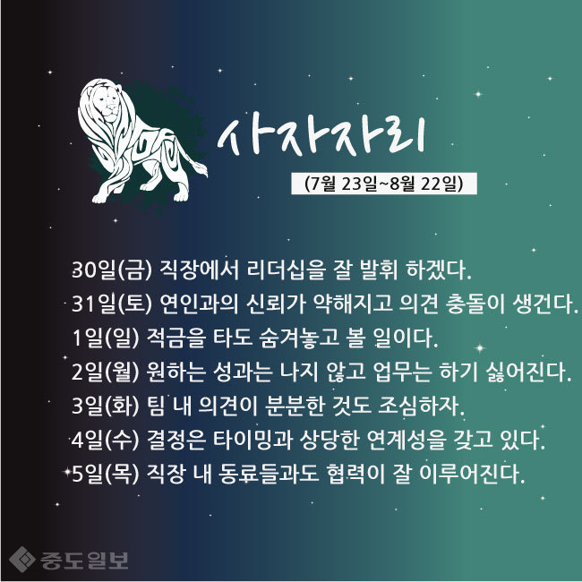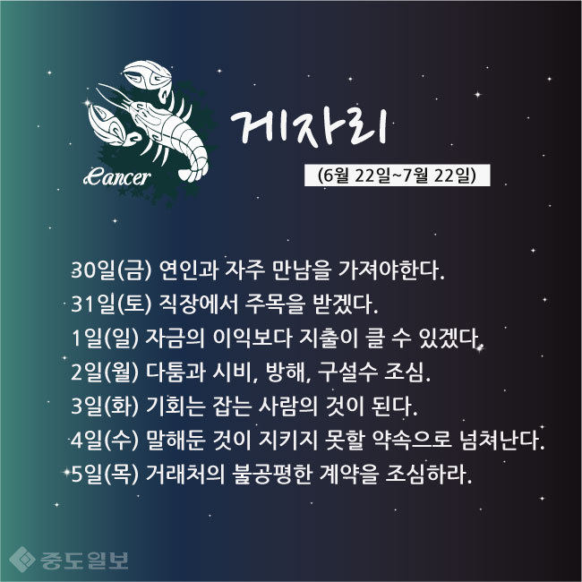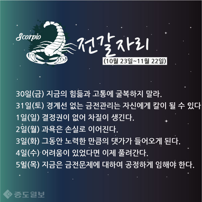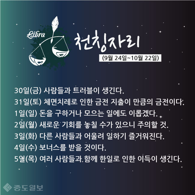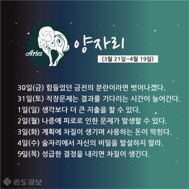 30일(금) 돈 문제로 실망스러운 일이 생긴다.