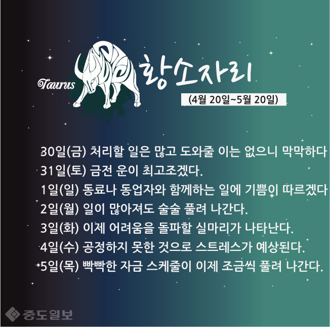 5일(목) 흐름이 안정적으로 이어지고 있으니 부지런히 움직여라.