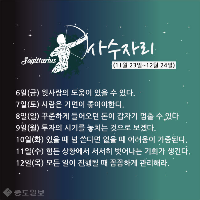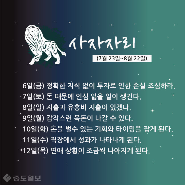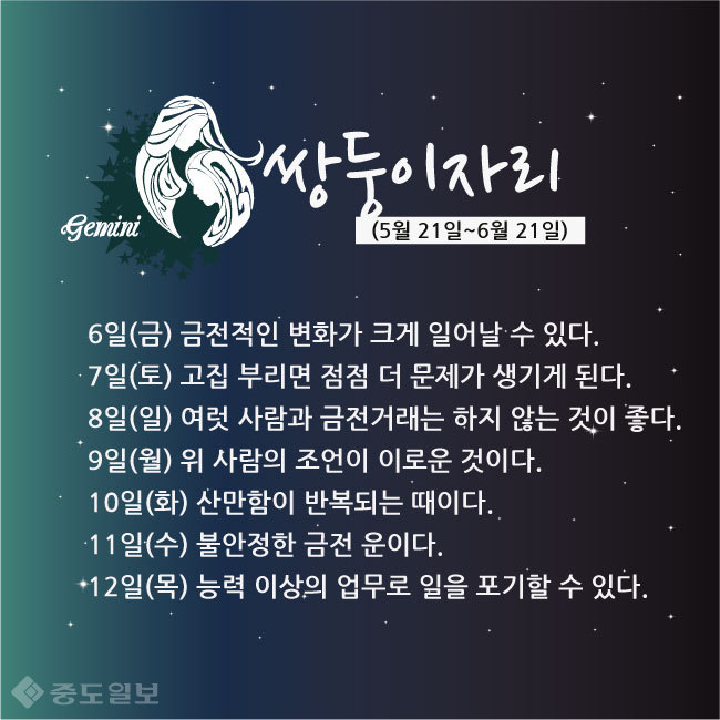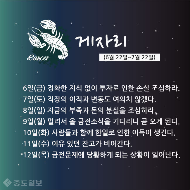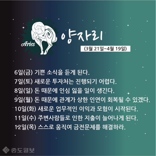 6일(금) 돈에 관련한 기대는 크게 하지마라.