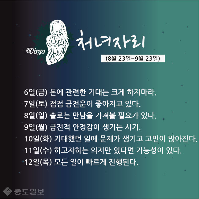 8일(일) 자금의 부족과 돈의 분실을 조심하라.