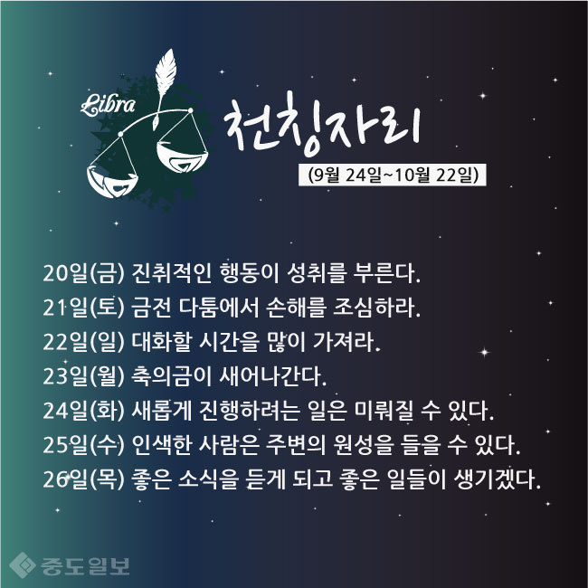 24일(화) 따뜻한 인간관계를 가지기에 좋은 때.