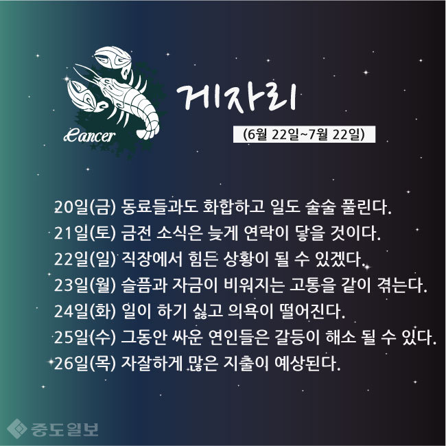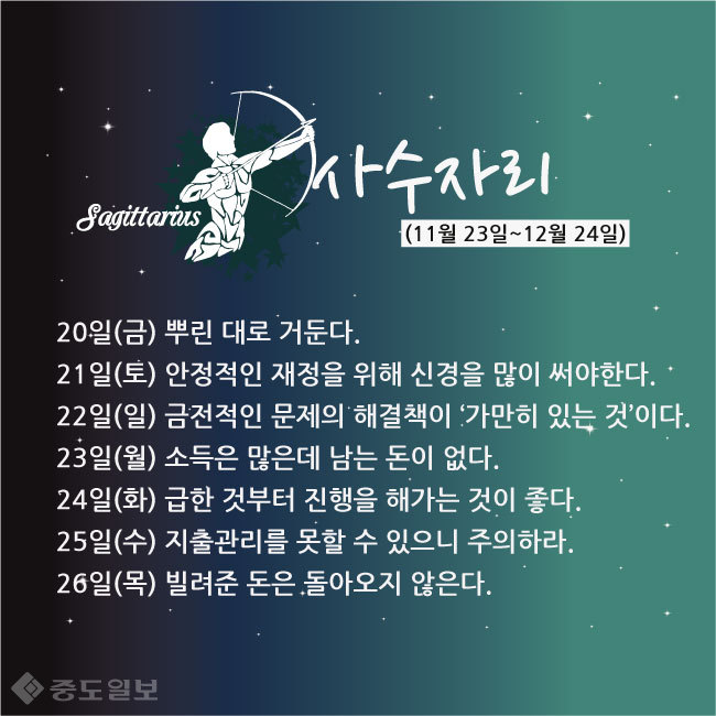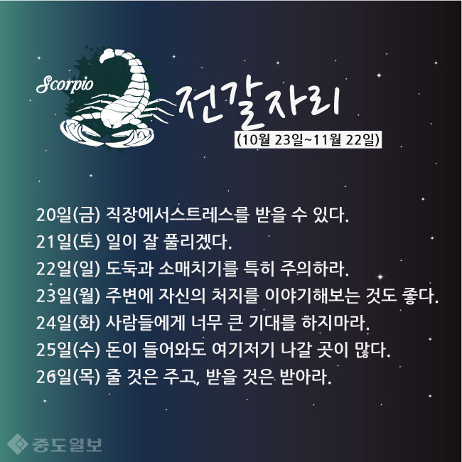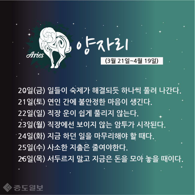 26일(목) 돈 문제로 친구나 연인을 잃을 수 있다.