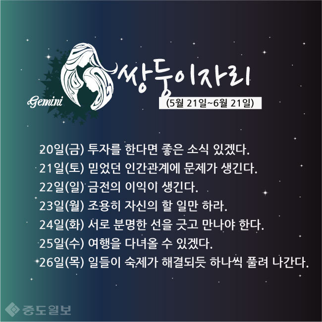 20일(금) 투자를 한다면 좋은 소식 있겠다.