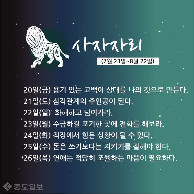 20일(금) 용기 있는 고백이 상대를 나의 것으로 만든다.