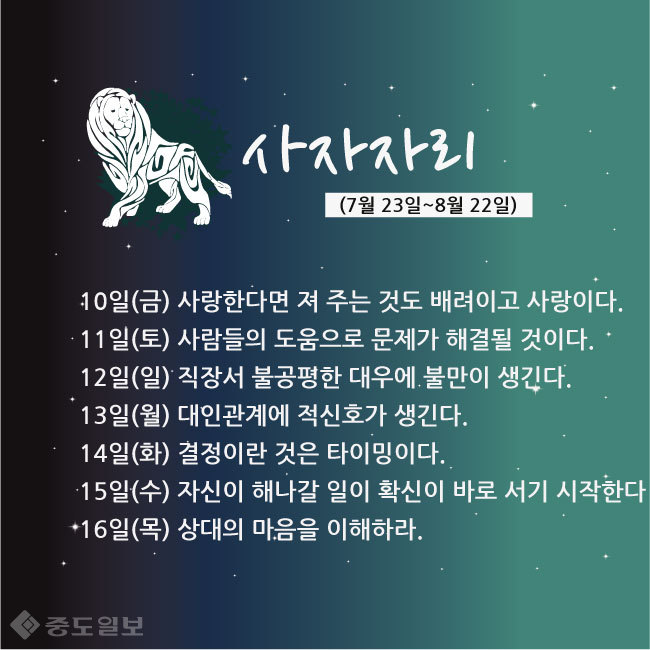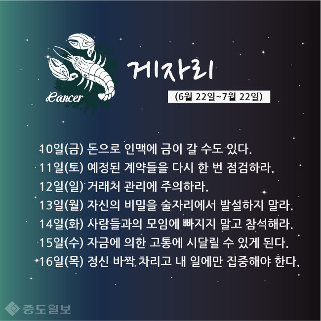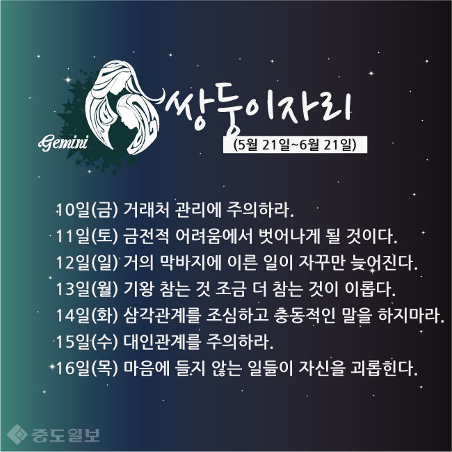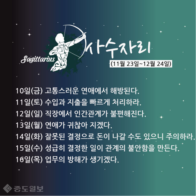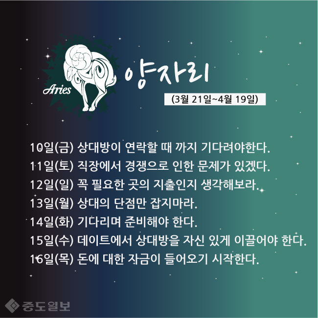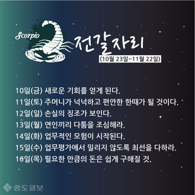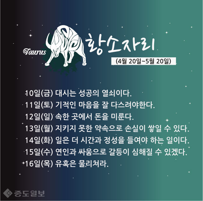 10일(금) 주변의 말을 듣고 지출하지마라.