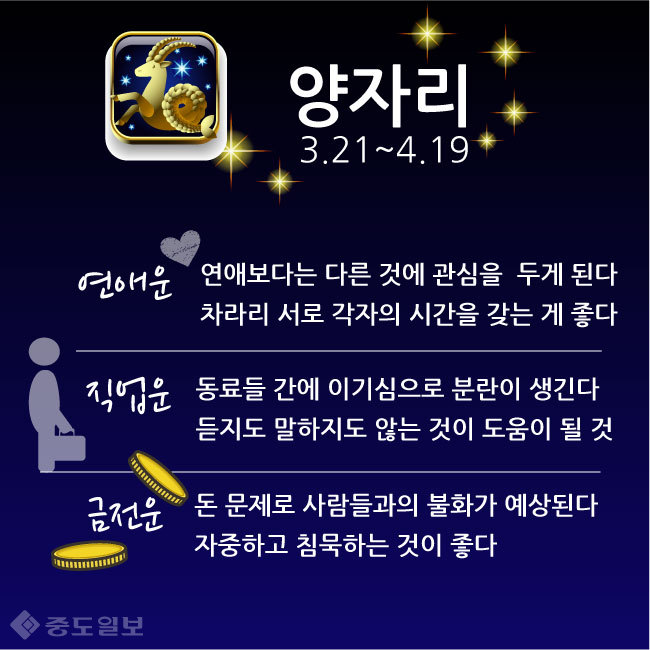 돈 문제로 사람들과의 불화가 예상된다. 자중하고 침묵하는 것이 좋다.