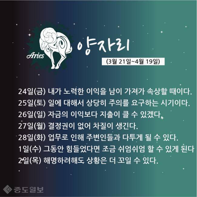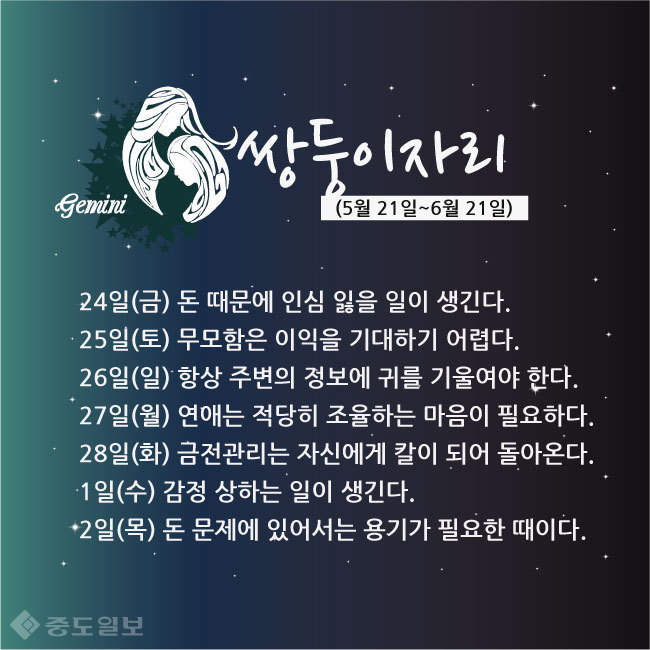 24일(금) 돈 때문에 인심 잃을 일이 생긴다.