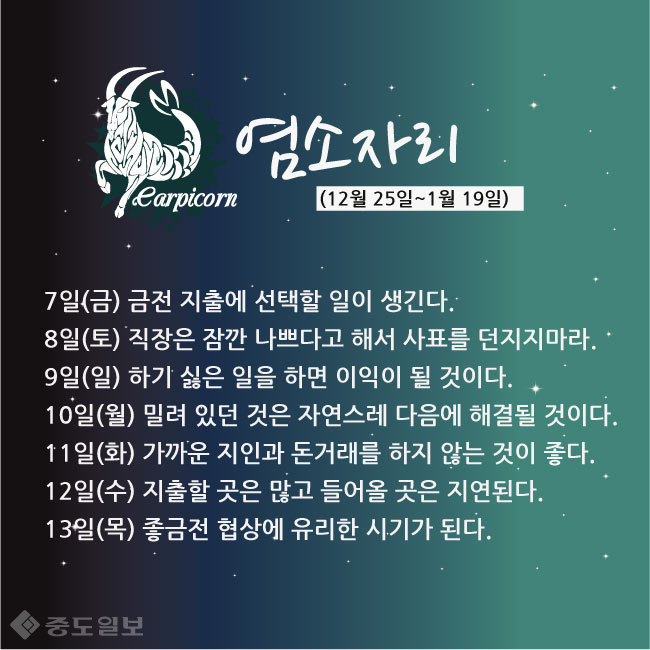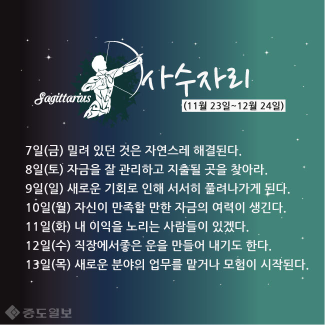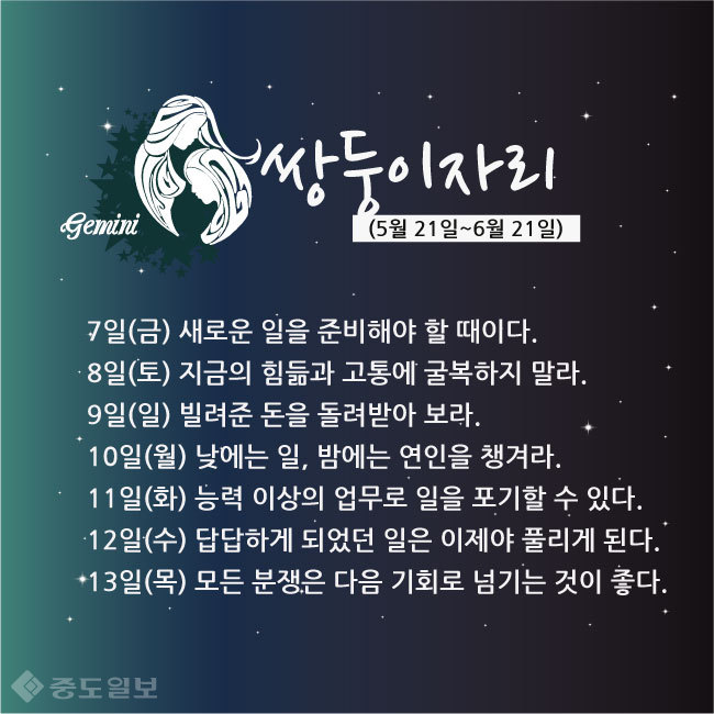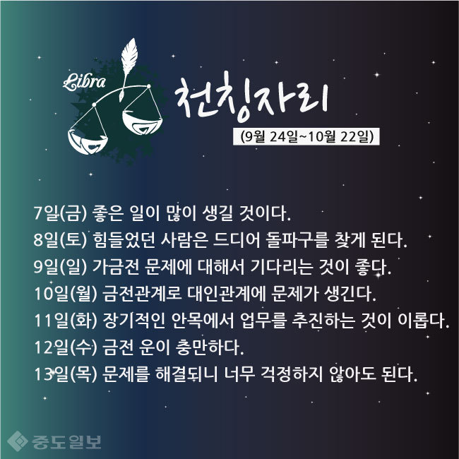 10일(월) 금전문제에서 서서히 벗어나는 기회가 생길 것.