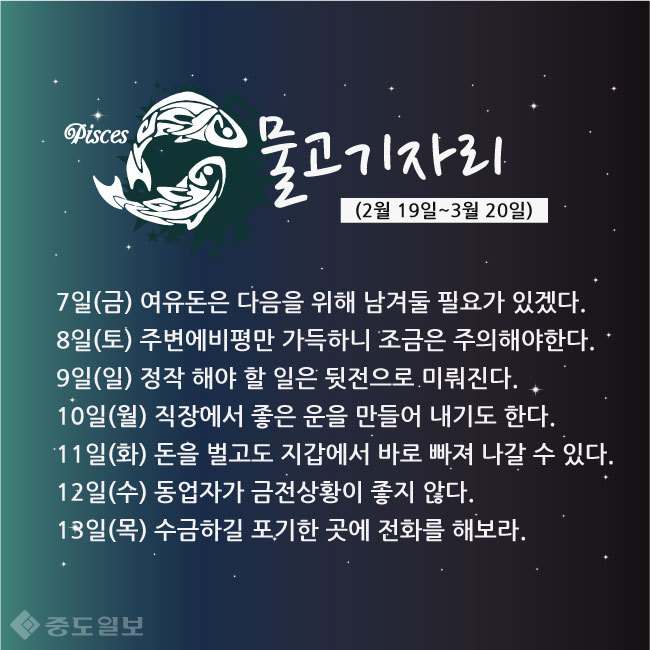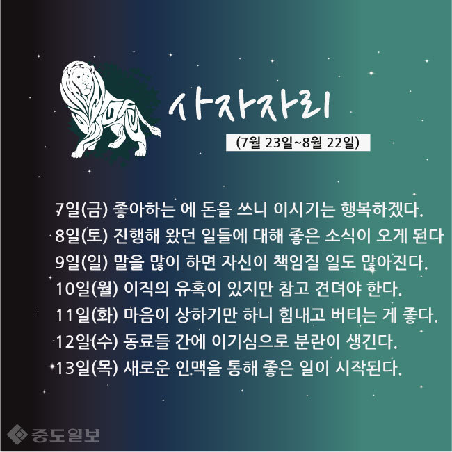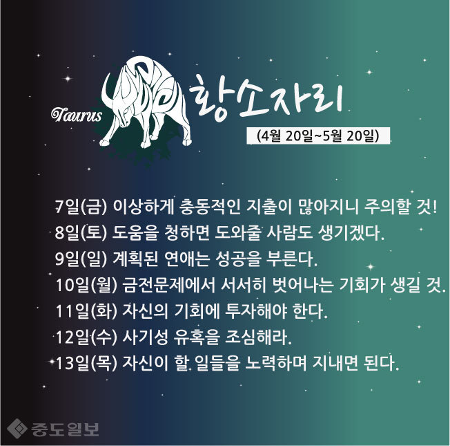 8일(토) 자금을 잘 관리하고 지출될 곳을 찾아라.