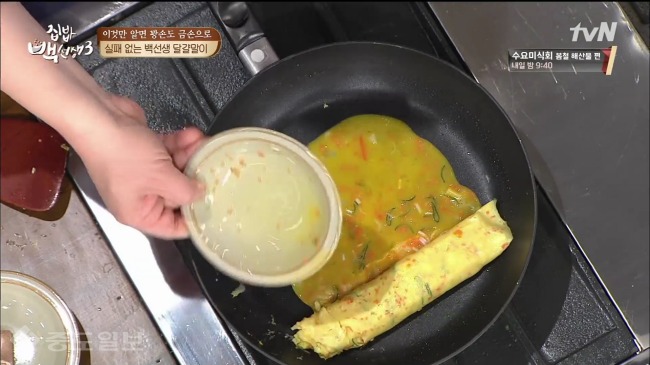 이어 "식용유는 조금만 넣고 키친타올을 이용해 팬이 코팅될 정도로 계속해 닦아주면서 사용해야한다"며 "달걀물 또한 나눠서 부어주면서 이 과정을 반복해야 한다"고 설명했다.
