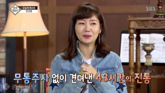 안선영은 12일날 방송된 '영재발굴단'에서 "출산할 때 힘들지 않았었느냐"는 정찬우의 질문에 깜짝 놀랄만한 사실을 밝혔다.