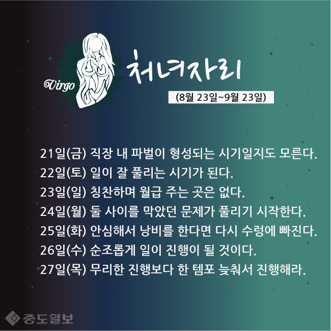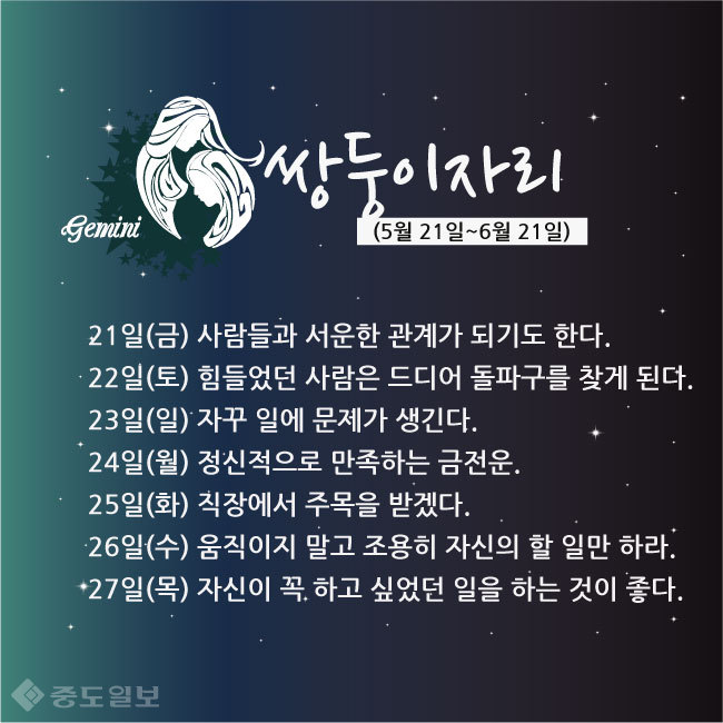 22일(토) 지혜롭게 주변의 가능성을 미리 찾아보라.
