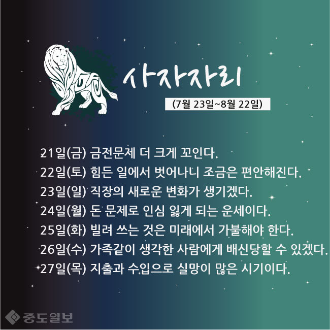 27일(목) 자금의 부족과 돈의 분실을 조심하라.