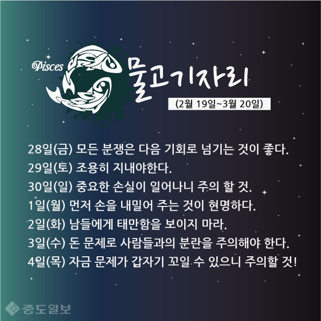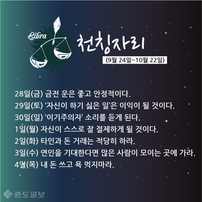 3일(수) 돈 문제로 감정 상하게 될 수 있으니 조심해라.