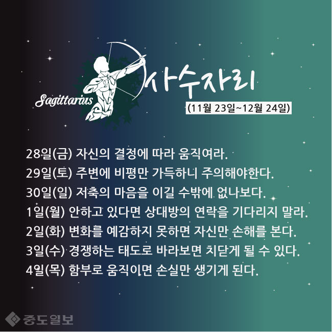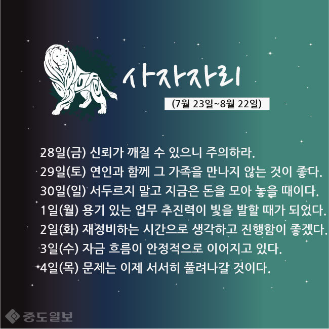 28일(금) 일을 처리해나간다면 성과를 얻게 될 것이다.