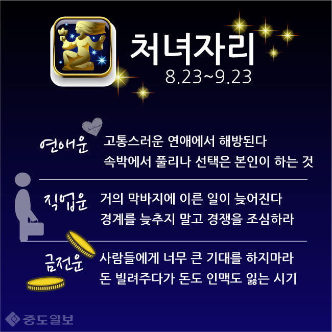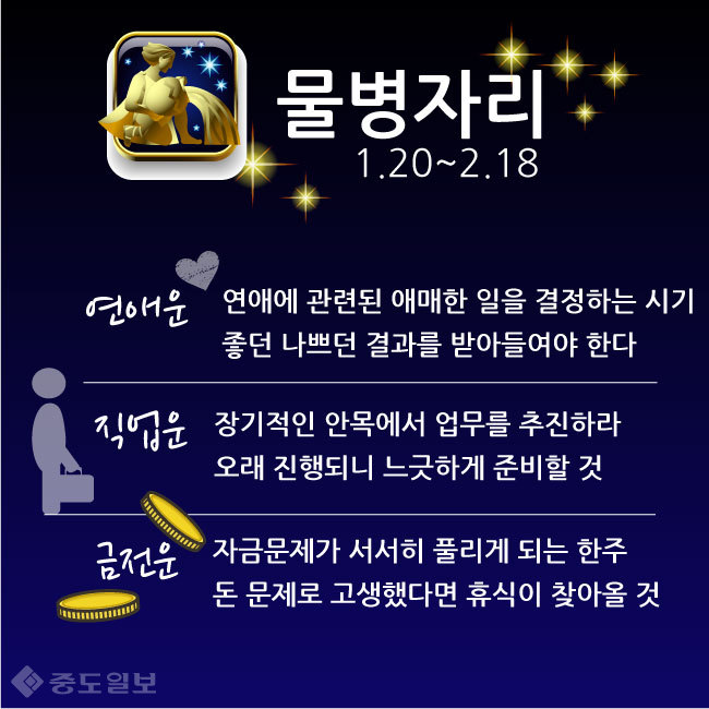 자금문제가 서서히 풀리게 되는 한 주. 돈 문제로 고생했다면 휴식이 찾아올 것.