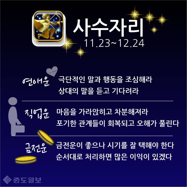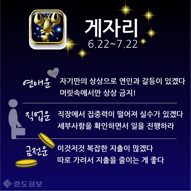 직장에서 집중력이 떨어져 실수가 생기겠다. 세부사항을 확인하면서 일을 진행해라.