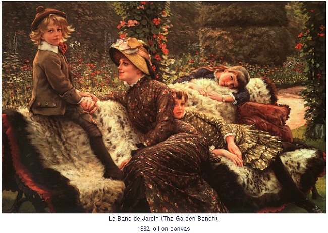 이 사랑의 압권인 미술품에 ‘공원 벤치(the garden bench)’가 있다. 제임스 티소(James Tissot)는 프랑스의 화가이다. 파리의 사교계 여인들을 정확하고 생동감 있게 표현한 그림으로 명성을 얻었으며 말년에는 종교화에 심취하여 성서의 삽화를 많이 그렸다고 전해진다.