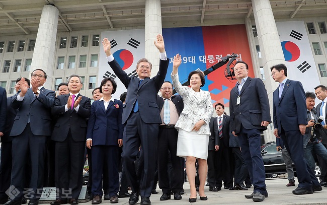 기호1번 더불어 민주당 문재인후보가 기호2번 홍준표 후보를 큰 표차이로 이기고 대통령에 취임하여 청와대로 향하는 모습은 온 국민들에게 꿈을 주고 많은 희망을 주고 있다.