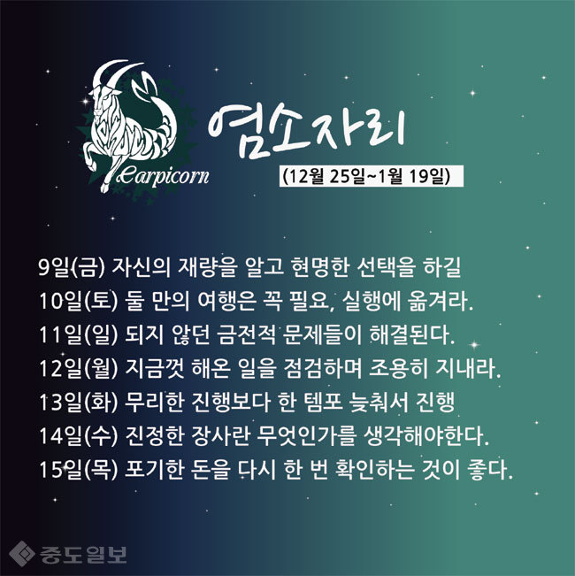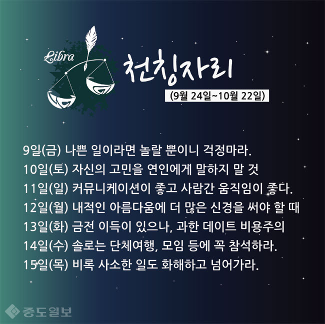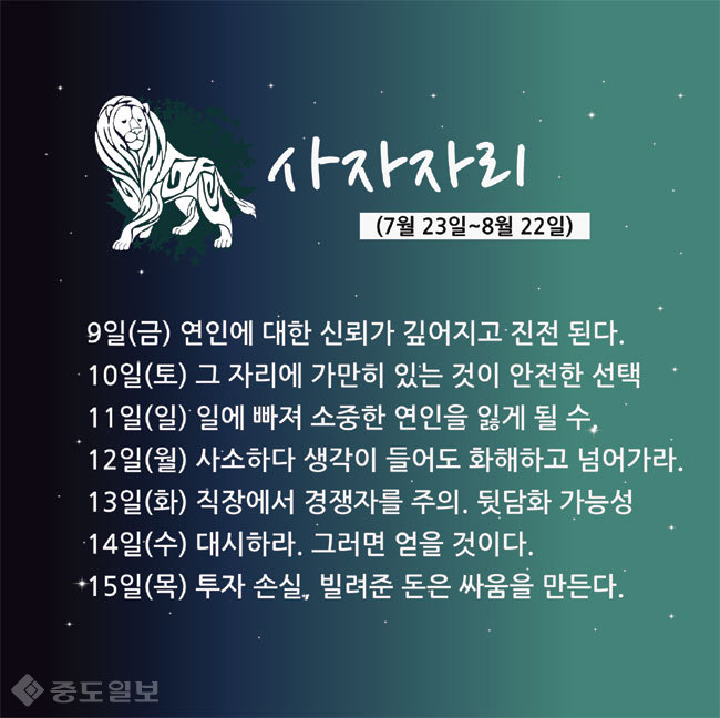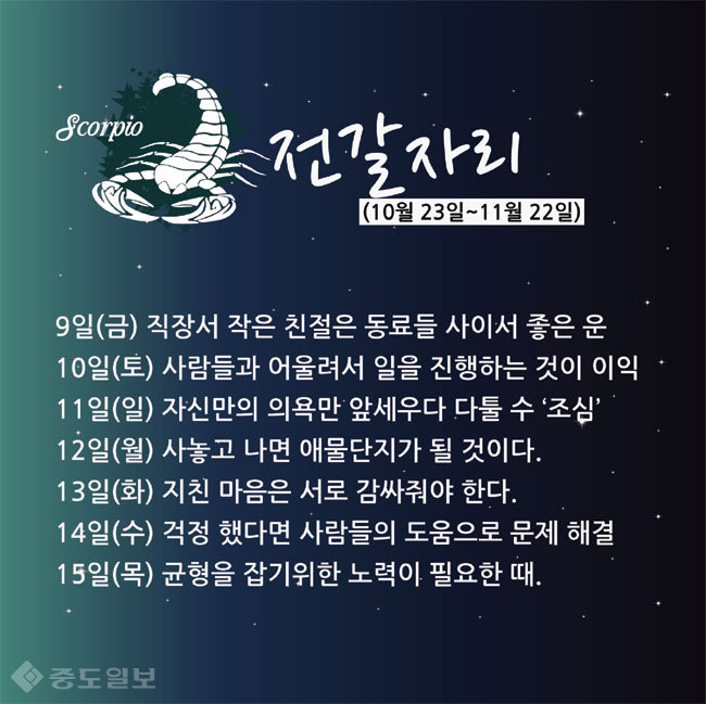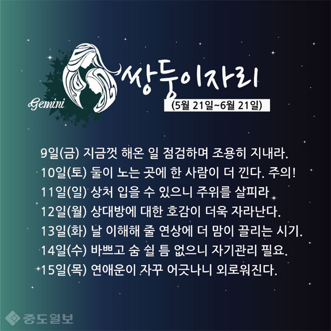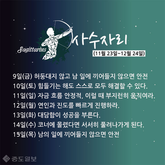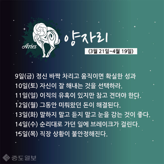 9일(금) 허둥대지 않고 남 일에 끼어들지 않으면 안전